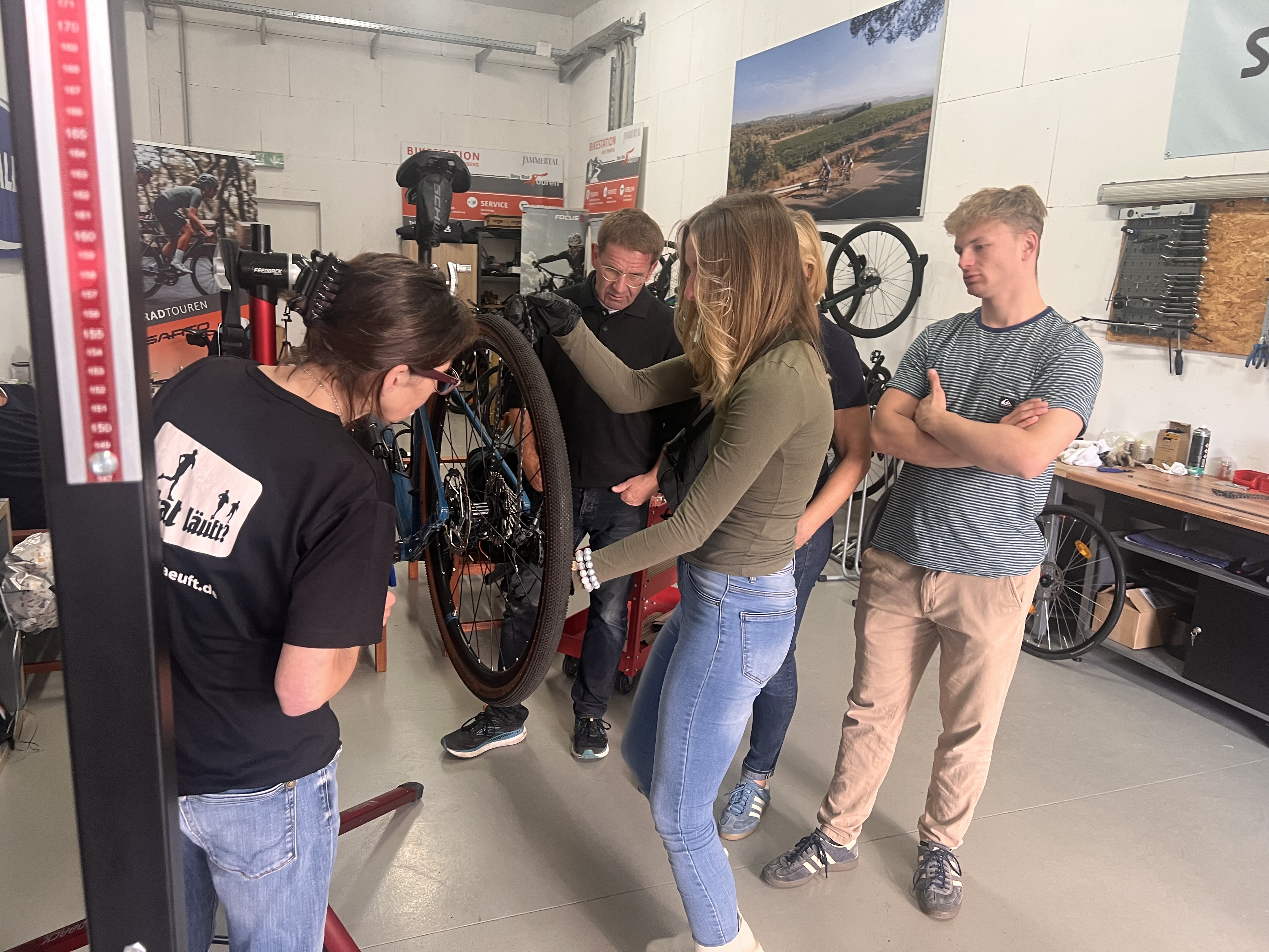 Wir stellen das Werkzeug und ein „Übungsrad“ zur Verfügung. Dazu gibt es diverse Teile wie Ketten & Kassetten, Laufräder usw.